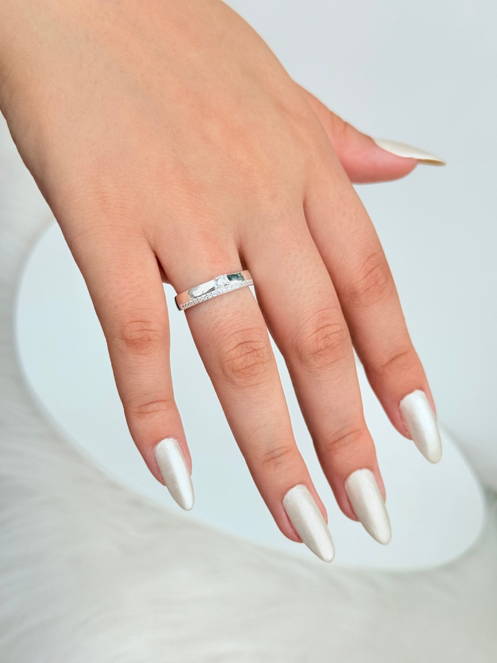 ALIANÇA DUPLA CONTENDO APARADOR E SOLITÁRIO EMBUTIDO NA PEÇA