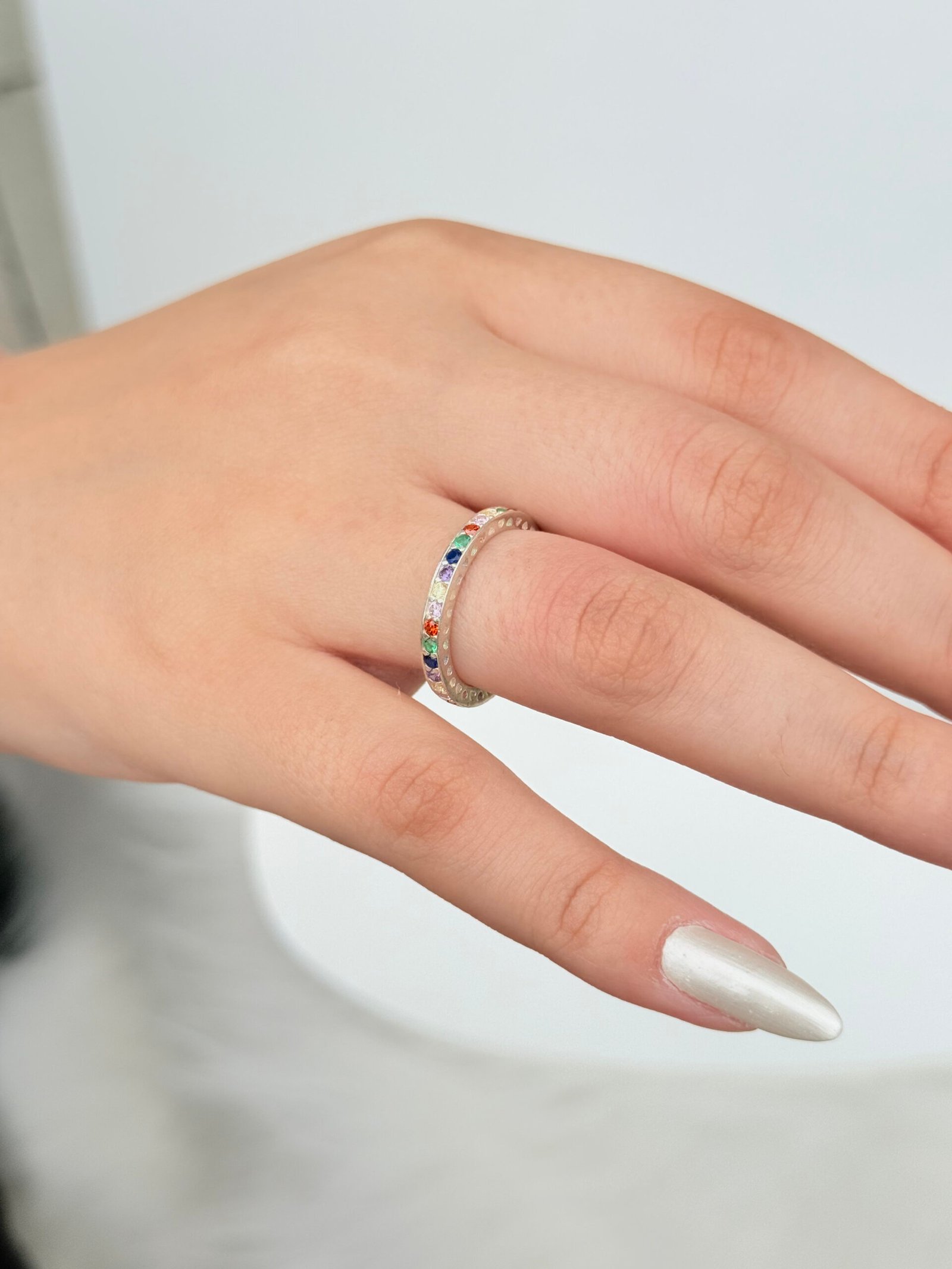 ANEL EM PRATA 925 CONTENDO CRISTAIS COLORIDOS