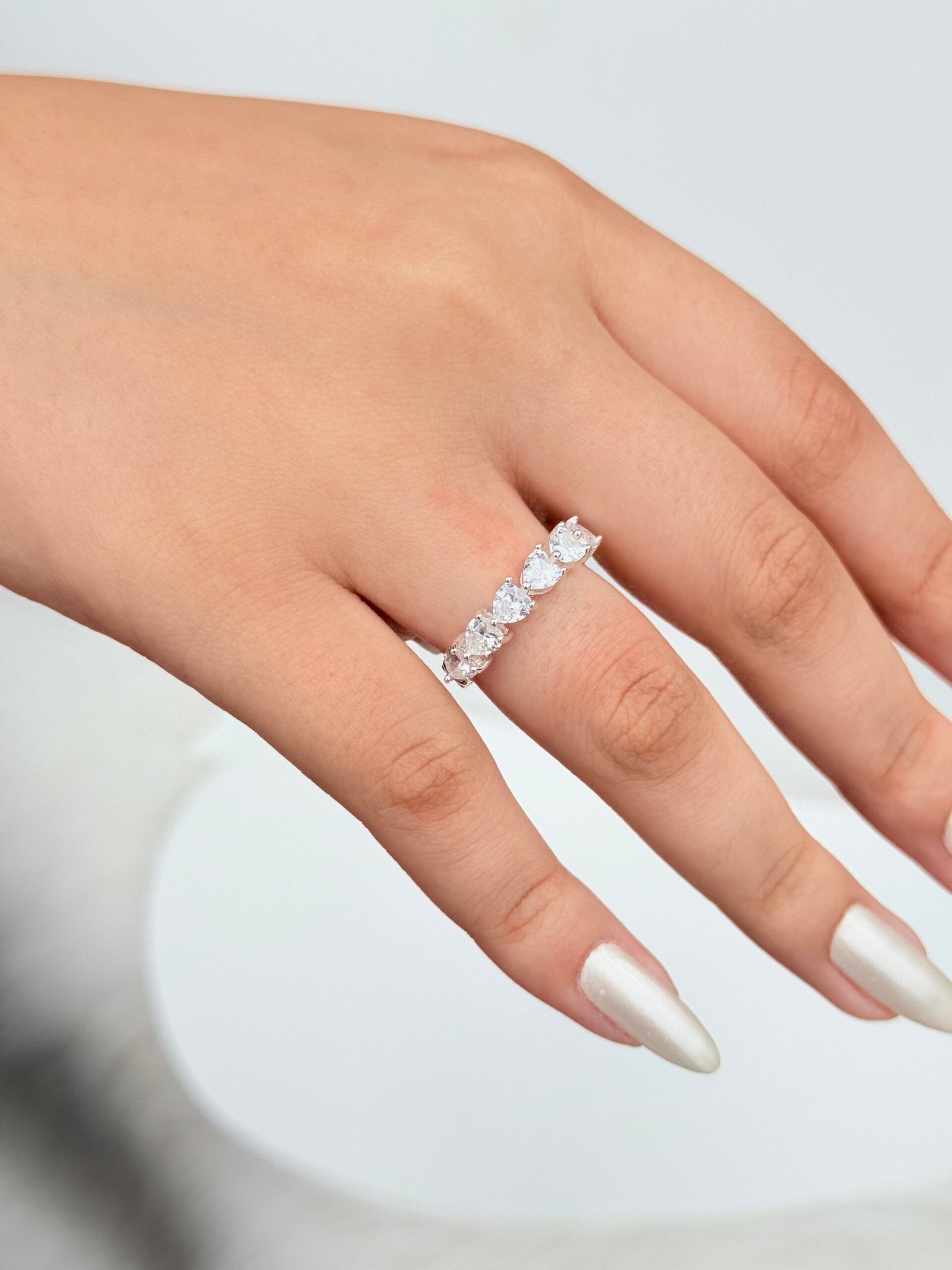 ANEIS CONTENDO ZIRCONIAS NO FORMATO DE CORAÇÃO TENDO 3 CORES DE CRISTAIS