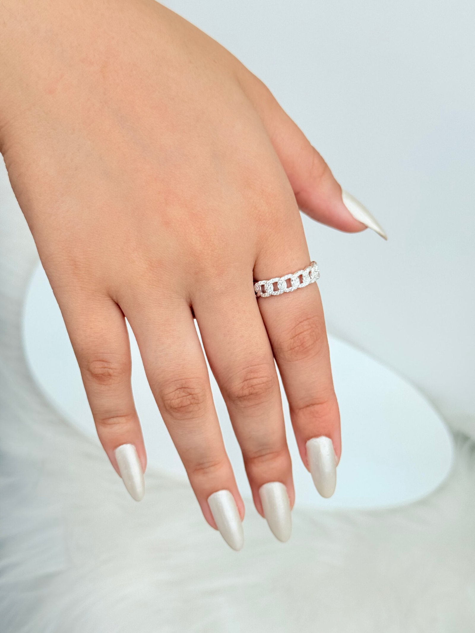 ANEL EM PRATA LEGITIMA 925 CONTENDO MICRO ZIRCONIAS CRAVEJADAS NA COR BRANCA