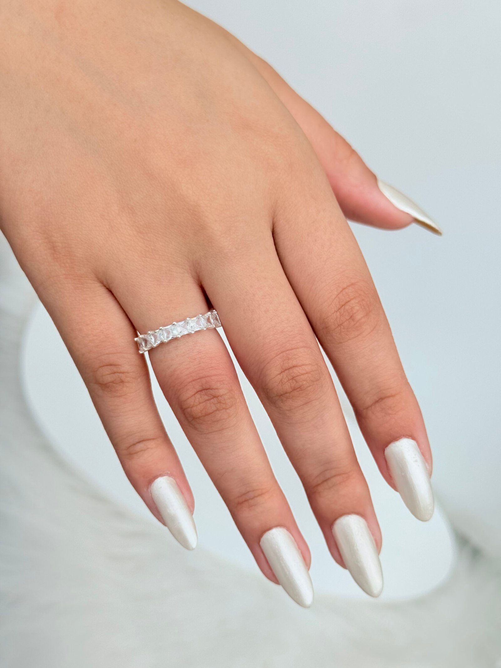 ANEL EM PRATA LEGITIMA 925 CONTENDO CRISTAIS BRANCOS NO FORMATO QUADRADO