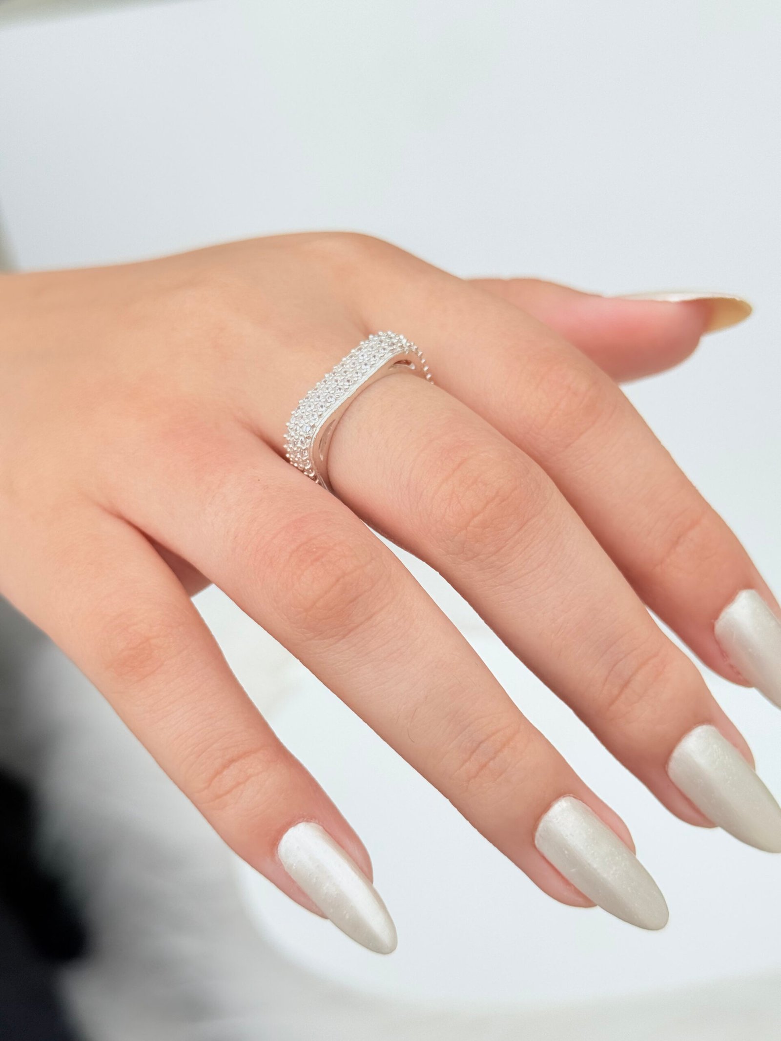 ANEL MODELO QUADRADO CONTENDO MICRO ZIRCONIAS BRANCAS CRAVEJADAS