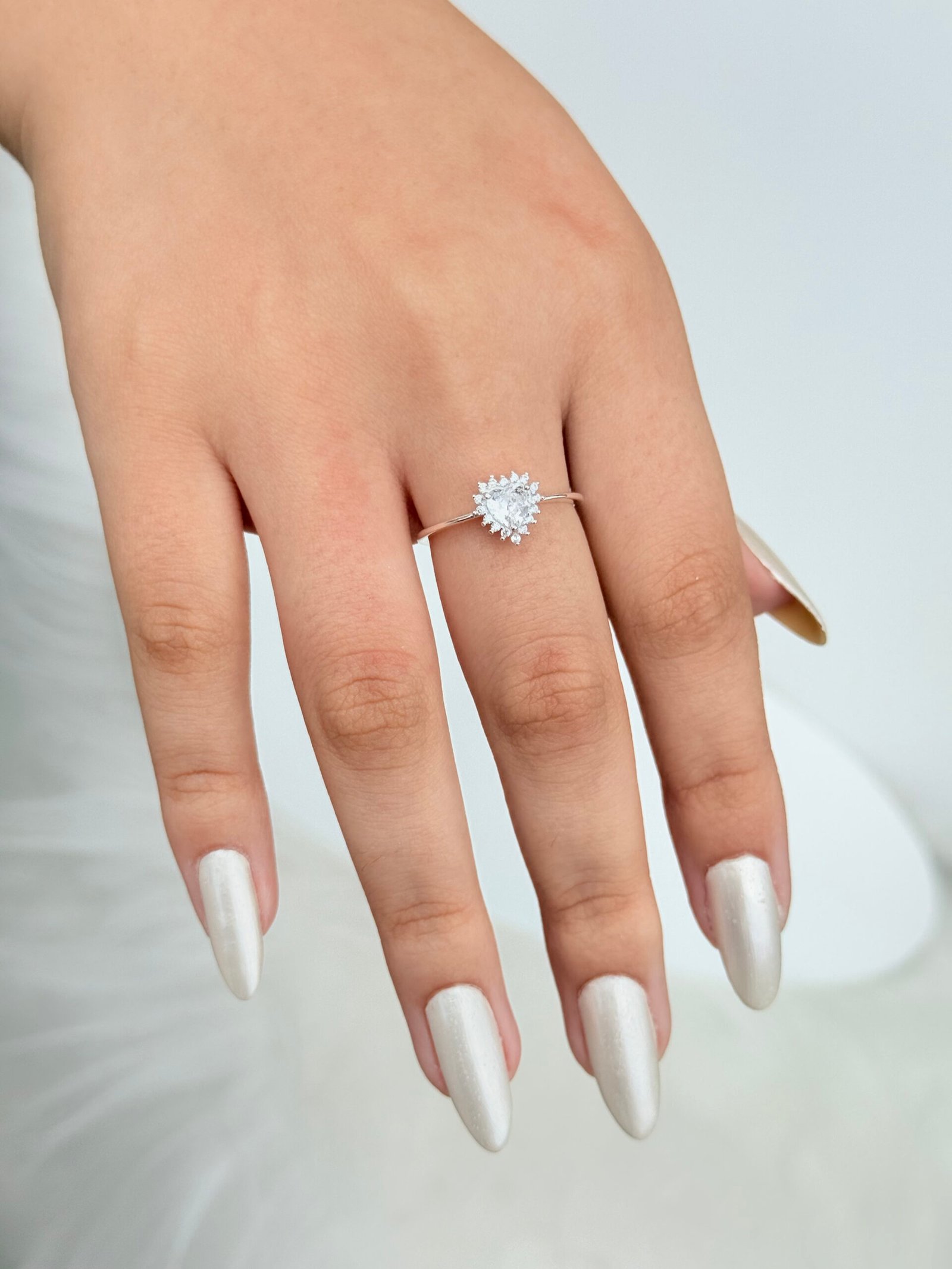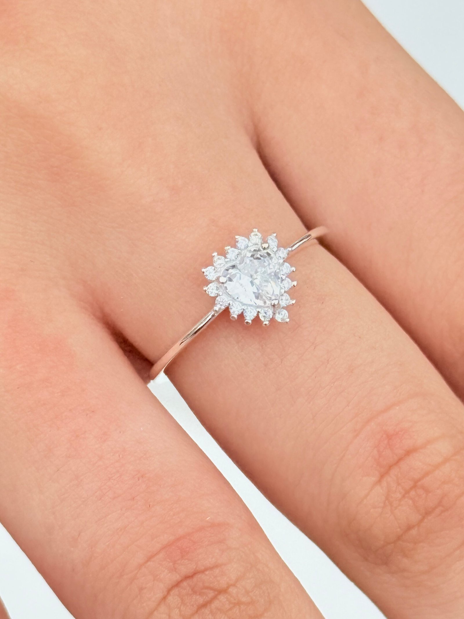 ANEL SOLITÁRIO CONTENDO PEDRA MEDINDO 5MM,E AO REDOR DA PEDRA MICRO ZIRCONIAS CRAVEJADAS