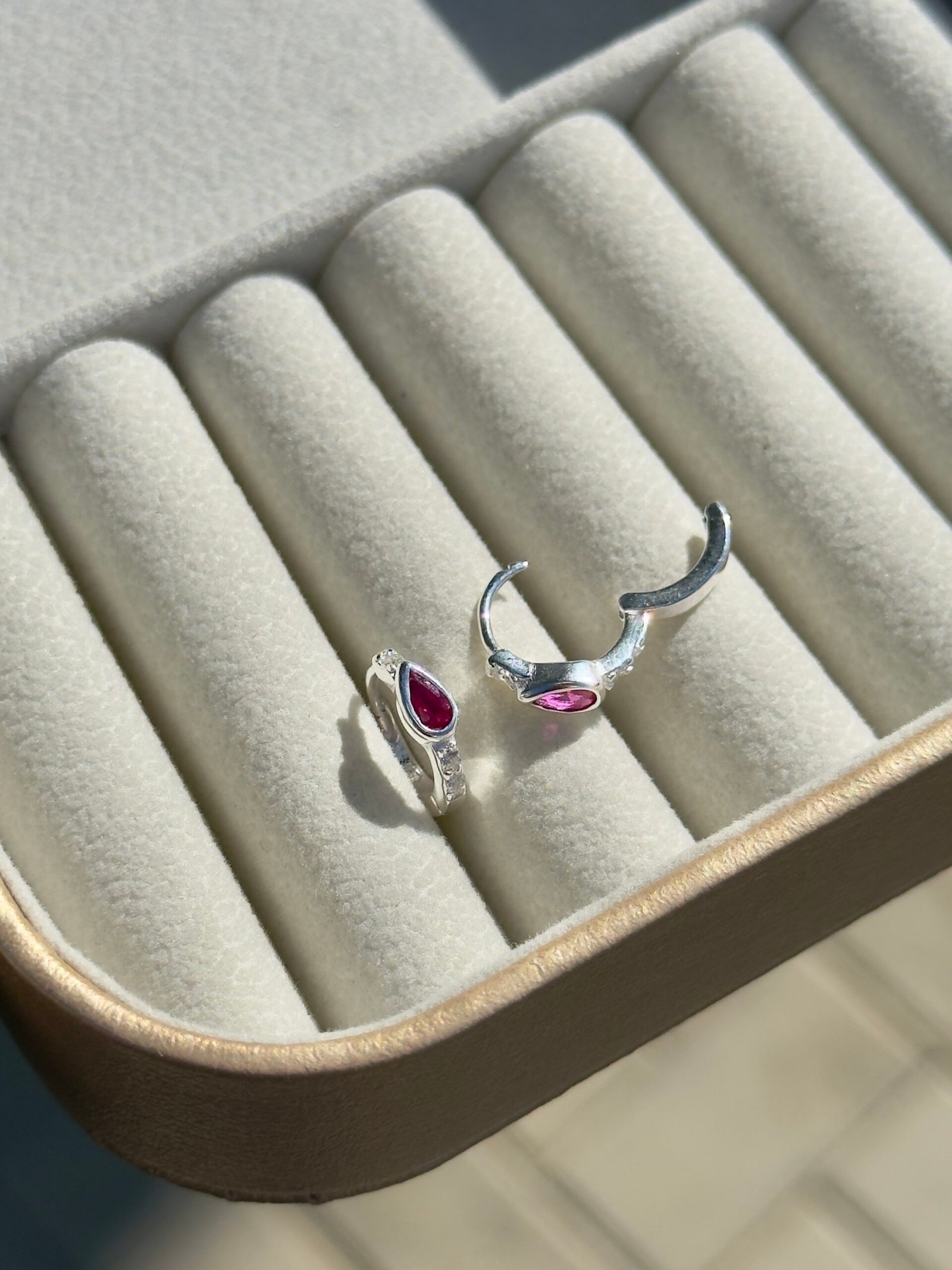 ARGOLA CLICKER EM PRATA 925 CRISTAL PINK
