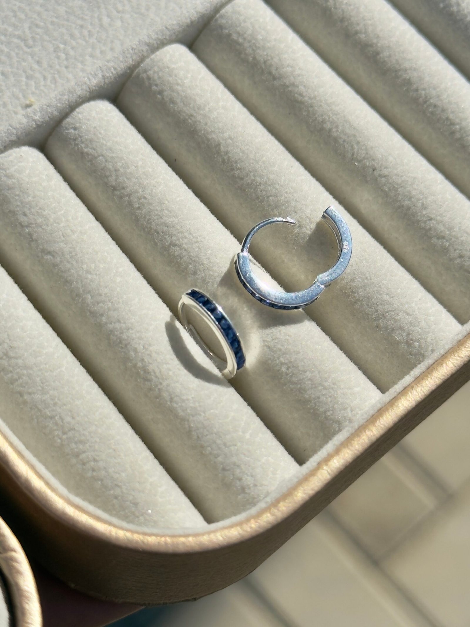 ARGOLA CLICKER EM PRATA 925 / ZIRCONIAS AZUIS