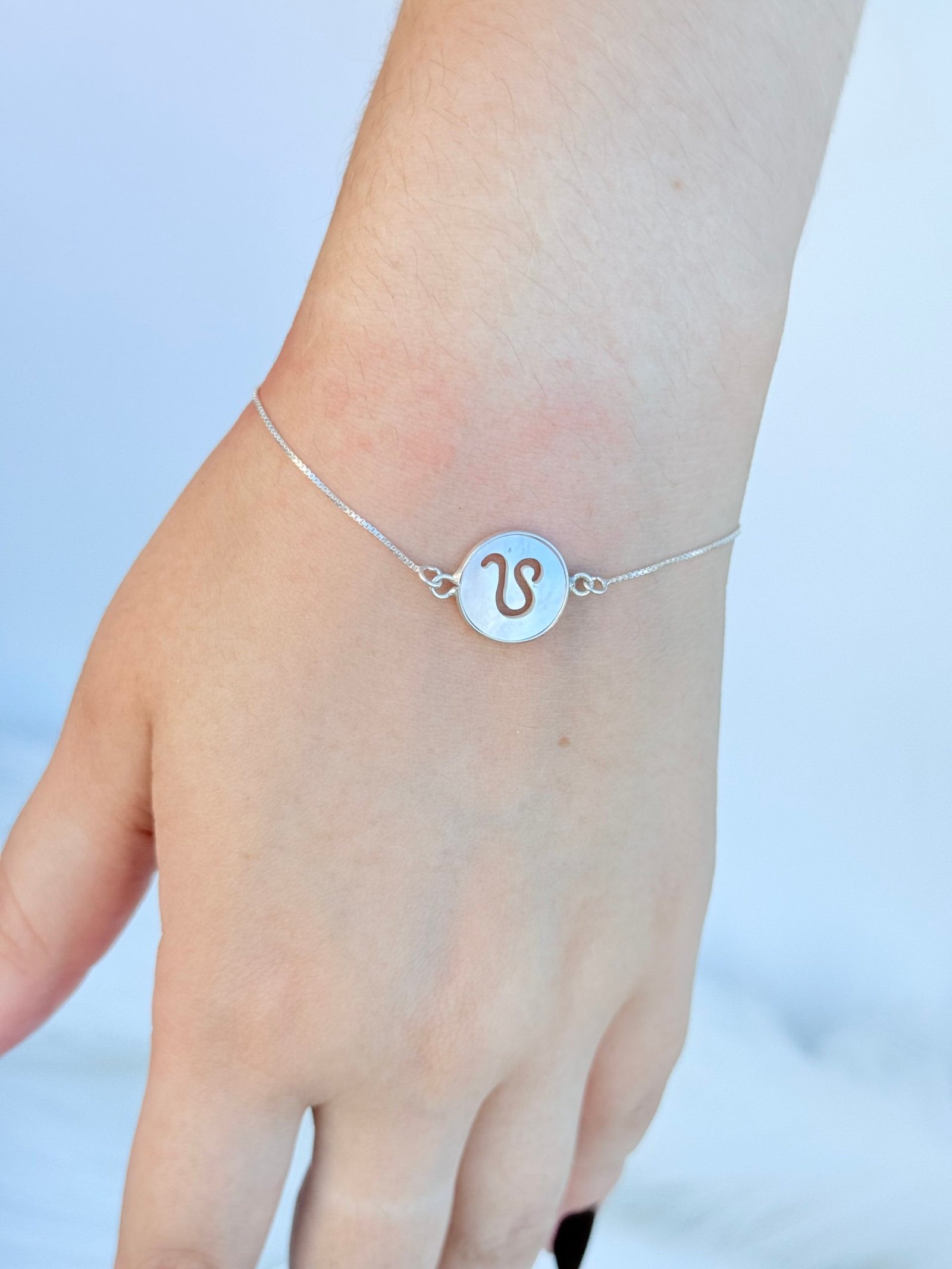 PULSEIRA EM PRATA 925 CONTEM PINGENTE DE SIGNO EM MADRE PEROLA